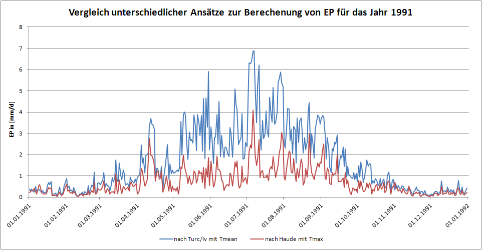 Abbildung 3‑1: Darstellung der potenziellen Verdunstung nach Haude und Turc/Ivanov