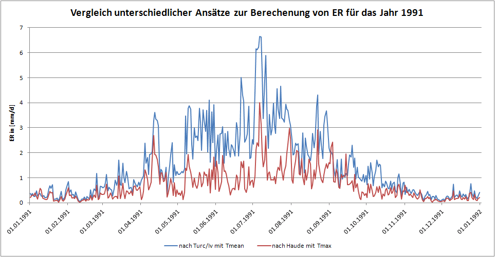 Abbildung 3‑2: Darstellung der realen Verdunstung nach Haude und Turc/Ivanov