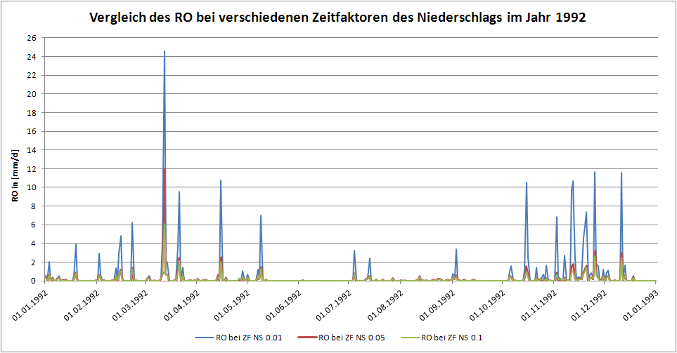 Abbildung 4‑3: Darstellung des Landoberflächenabflusses bei unterschiedlichen Zeitfaktoren für den Niederschlag