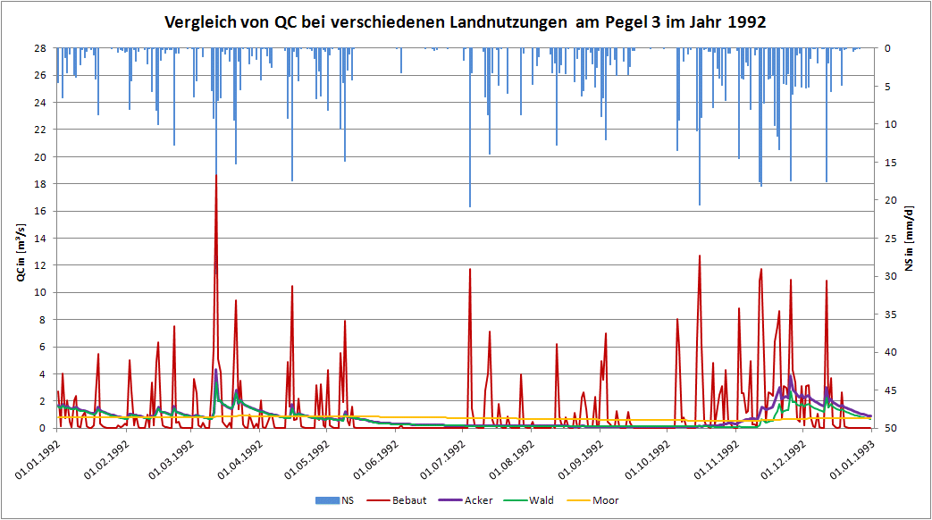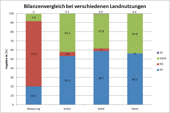 Abbildung 7‑1: Darstellung des Gesamtabflusses unterschiedlicher Landnutzungen